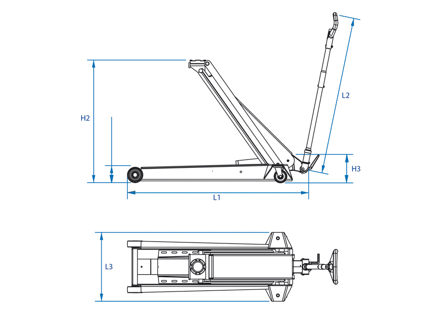 Gato con alto levantamiento para camiones, maquinaria agrícola y obras públicas.